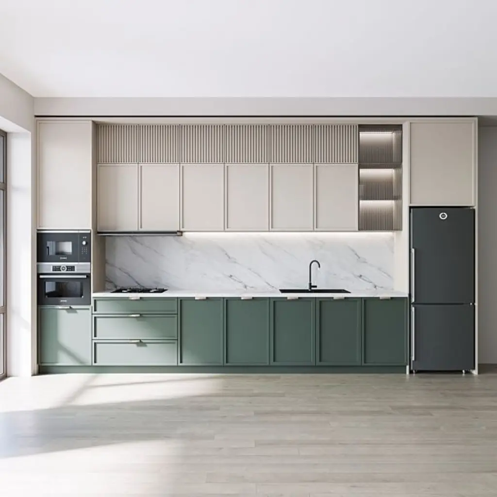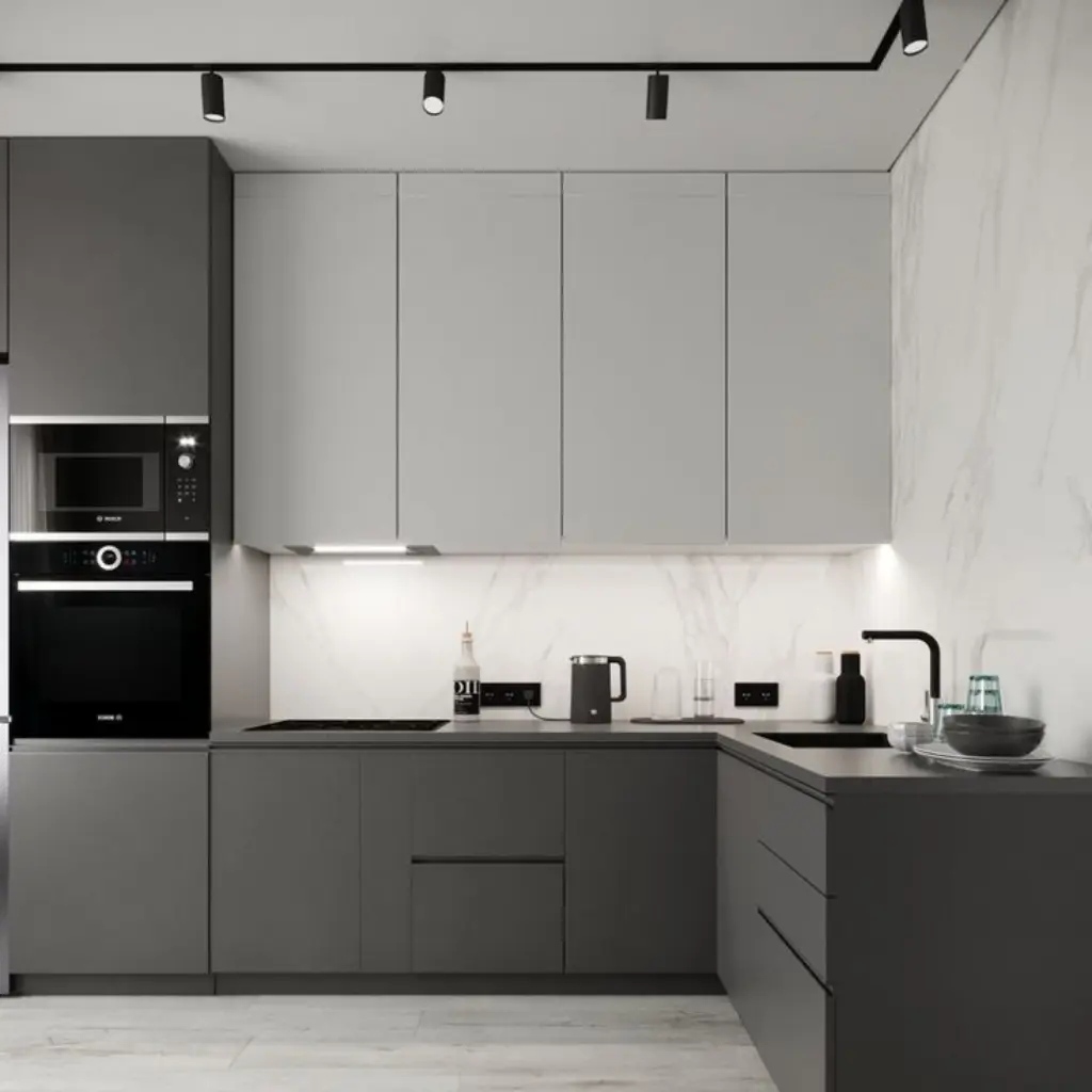 A modern, functional kitchen crafted with smart storage, elegant finishes, and seamless layouts that make cooking effortless and every moment beautifully organized.